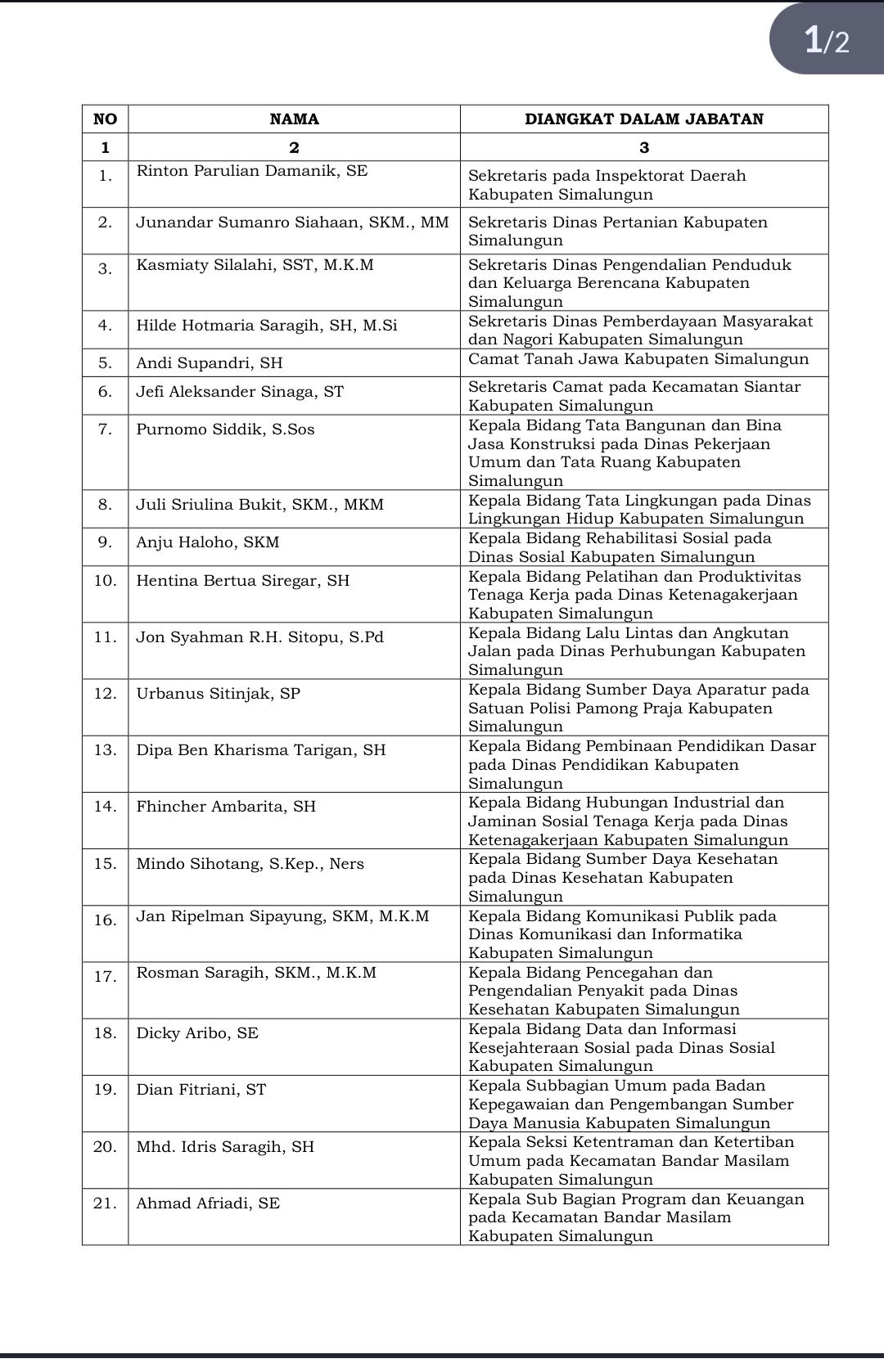 Pelantikan pejabat tersebut dilaksanakan berdasarkan Surat Keputusan Bupati Simalungun Nomor 100.3.3.2/59.a/2026, yang secara khusus mengatur tentang pelantikan dan pengambilan sumpah atau janji PNS dalam jabatan administrator dan pengawas di lingkungan Pemkab Simalungun.