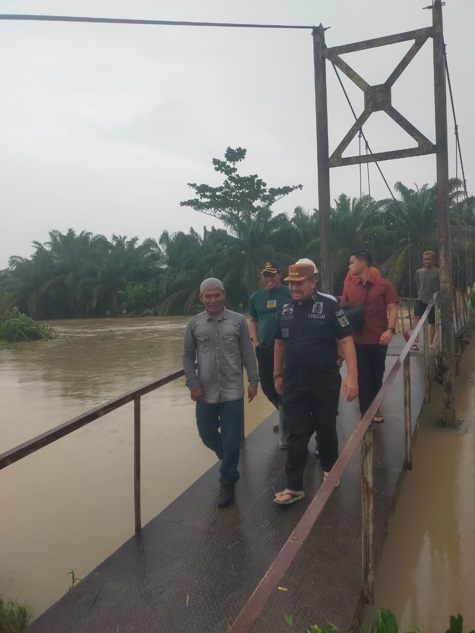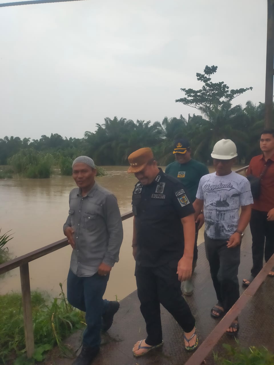 Kunjungan Bupati Batu Bara Baharudin Siagian ini langsung menunjau ke titik lokasi yang terkena banjir di sepanjang jalan desa Kandangan hingga perumahan warga dan ke lokasi jembatan gantung yang rusak akibat terjangan air banjir disepanjang sungai suka atau kerap disebut sungai bahapal menuju pagurawan.