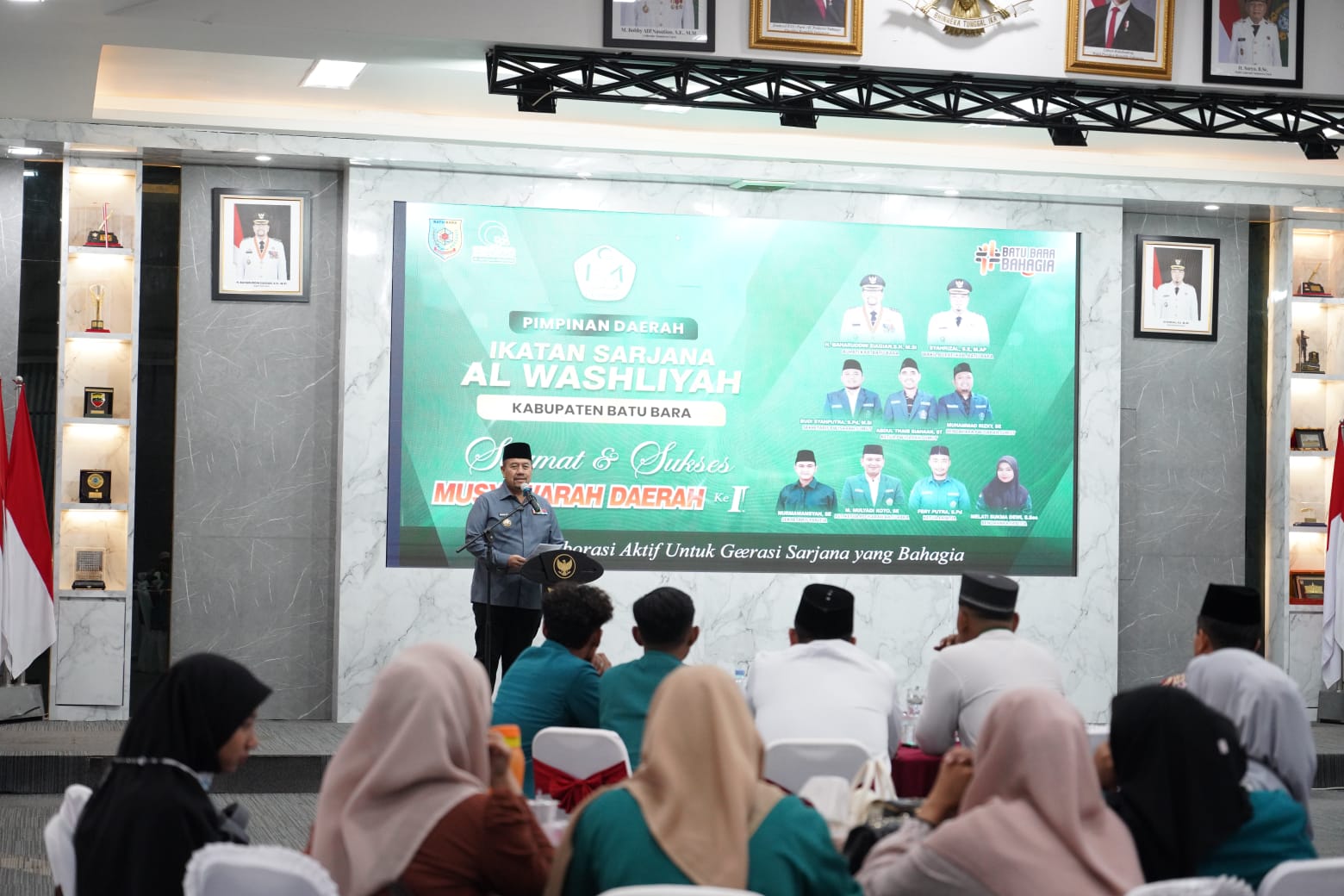 Penegasan tersebut disampaikan saat membuka Musyawarah Daerah Ikatan Sarjana Al Washliyah Kabupaten Batu Bara yang mengusung tema “Kolaborasi Aktif untuk Generasi Sarjana yang Bahagia” di Aula Rumah Dinas Bupati, Tanjung Gading, Kecamatan Sei Suka, Kamis (12/2/2026).