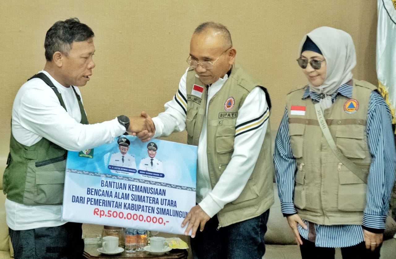 Siberjurnalis.co.id || PANDAN TAPTENG – Kantor Bupati Tapanuli Tengah (Tapteng) di Pandan menjadi saksi pertemuan yang penuh dengan kepedulian antar pemerintah kabupaten. Bupati Simalungun, Dr H Anton Achmad Saragih didampingi Ketua TP. PKK Kabupaten Simalungun Hj Darmawati Anton Achmad Saragih, secara langsung menyerahkan bantuan kemanusiaan kepada Bupati Tapteng, Masinton Pasaribu yang didampingi Wabup Tapteng, Mahmud Efendi, Minggu (7/12/2025).