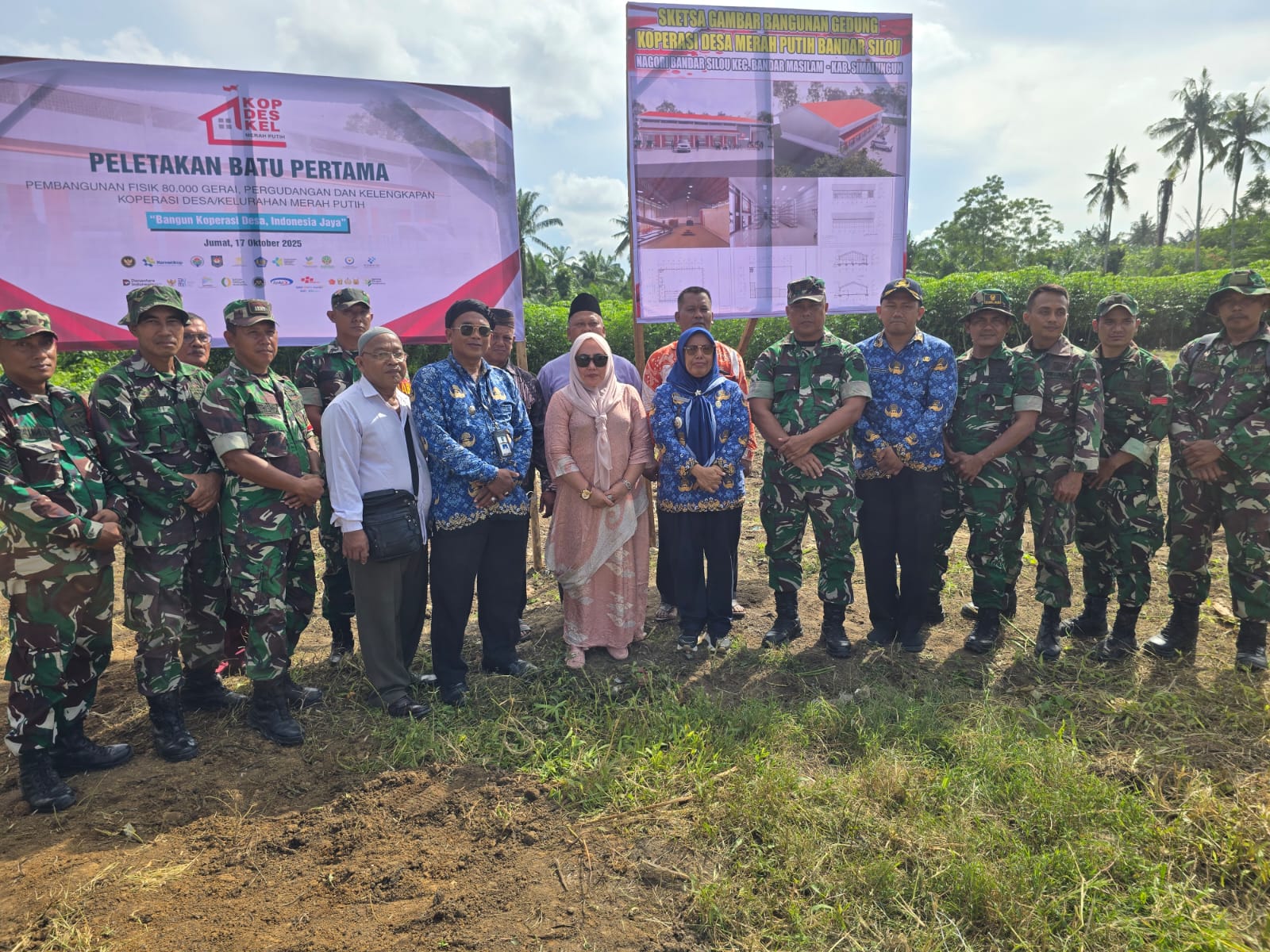 Siberjurnalis.co.id || SIMALUNGUN – Camat Bandar Masilam Ida Royani Damanik.S.Pd.,M.Ap bersama Danramil 06 Bandar Kapten Inft R.Pasaribu dan Kapolsek Perdagangan, Ketua Projo Muda Linawati, secara bersama laksanakan peletakan batu pertama pembangunan Gray Koperasi Merah Putih (KMP) Desa/Kelurahan secara nasional seluruh indonesia melalui Zoom bersama Kemendes dan Kemenkop, Jumat 17/10/2025 di Nagori Bandar Silou Kecamatan Bandar Masilam Simalungun Sumatera Utara pukul 14.15 Wib (waktu disesuaikan daerah masing-masing-red).