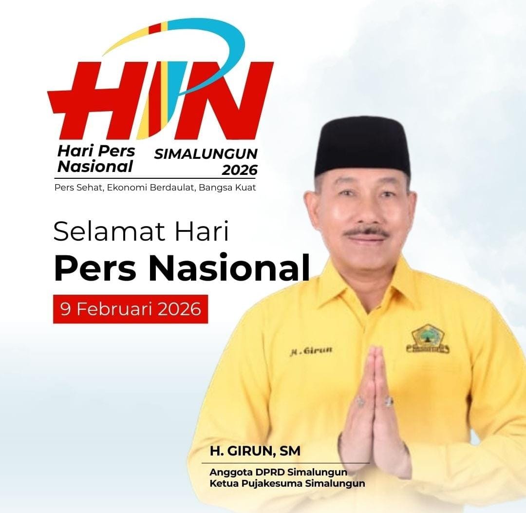 SIMALUNGUN – Selamat Hari Pers Nasional tahun 2026! Mari wujudkan pers yang sehat demi mendukung perekonomian bangsa yang lebih berdaulat, dengan informasi yang akurat tajam dan terpercaya pers ikut membangun fondasi ekonomi nasional yang mandiri kokoh dan tangguh.