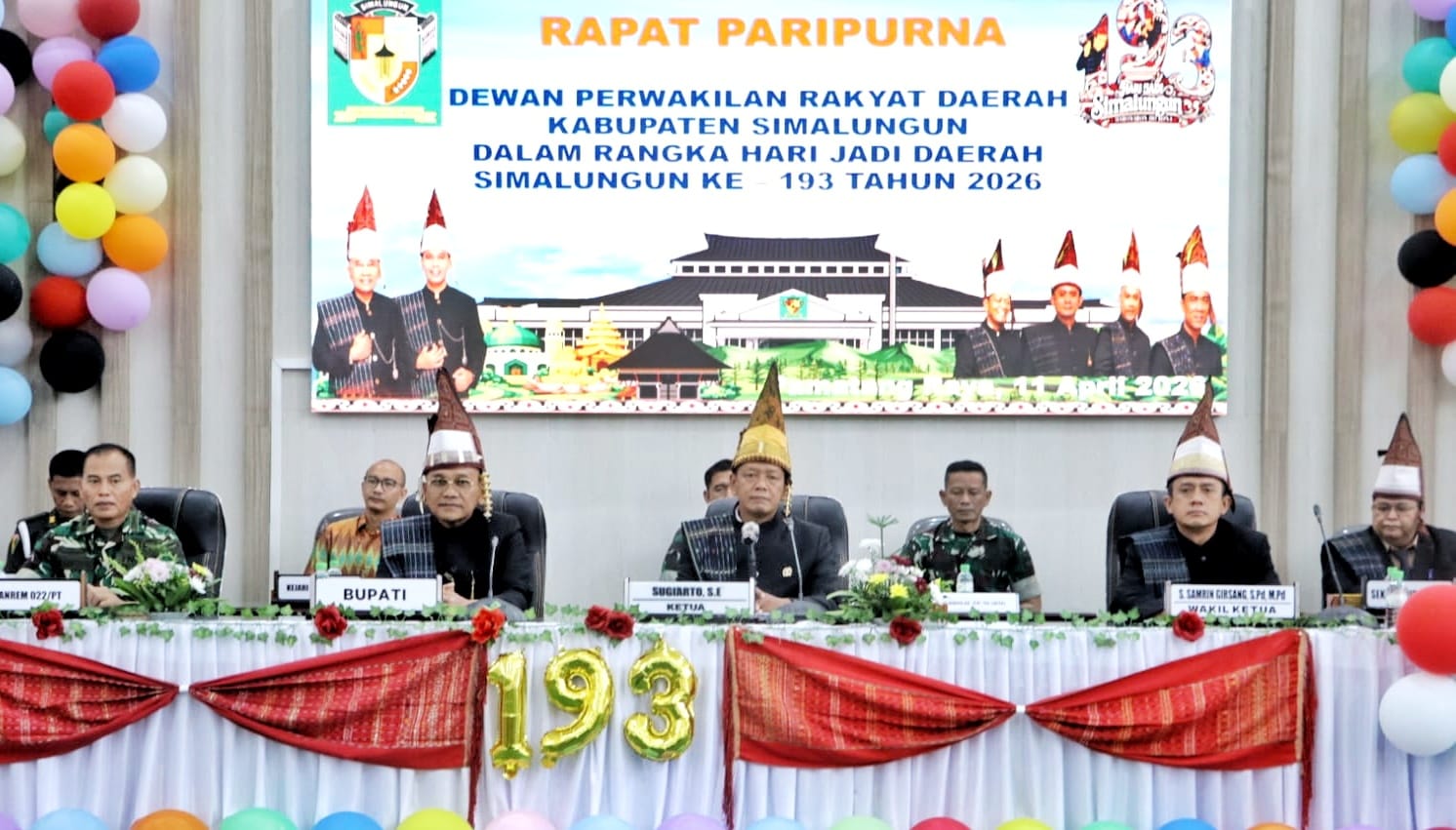 “Dengan demikian, pada hari ini Sabtu tanggal 11 April 2026 kita memperingati Hari Jadi ke-193 Daerah Simalungun,” tegasnya.