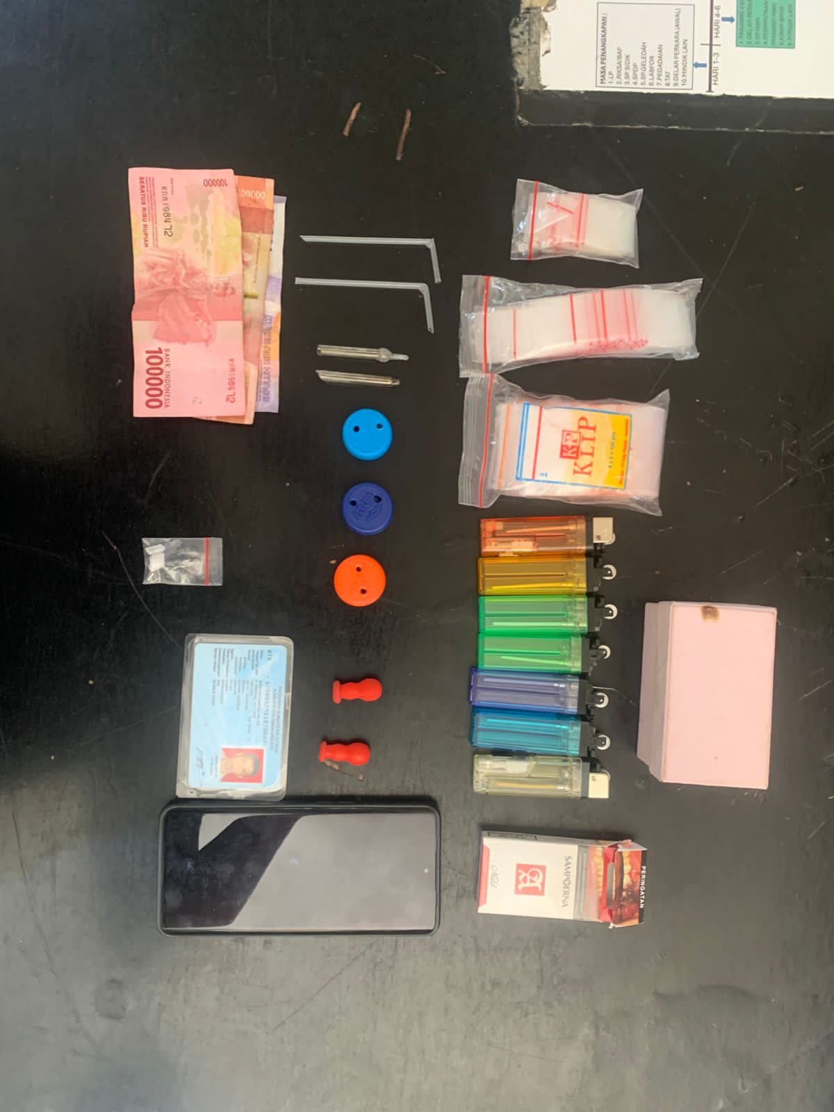 Selain itu, petugas juga mengamankan uang tunai hasil penjualan sebesar Rp210.000, satu buah kotak rokok Sempurna, dua buah pipet plastik, tiga buah tutup botol Aqua, dua buah kompensasi berwarna merah, satu buah kotak berwarna merah jambu, satu buah tas dompet bercorak bunga, dan satu buah KTP milik tersangka.